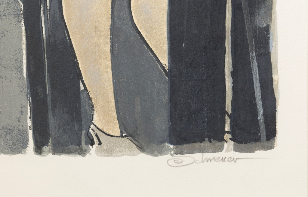 David Schneuer is a modern figurative artist and printmaker recognized for his refined draftsmanship and narrative-driven compositions inspired by European modernism. His lithographs have been widely exhibited and collected, earning recognition for their elegant balance of line, form, and social commentary. Schneuer’s limited-edition works are held in numerous private collections and are valued for their timeless subject matter and sophisticated graphic style, positioning him as a respected contributor to late 20th-century figurative printmaking.