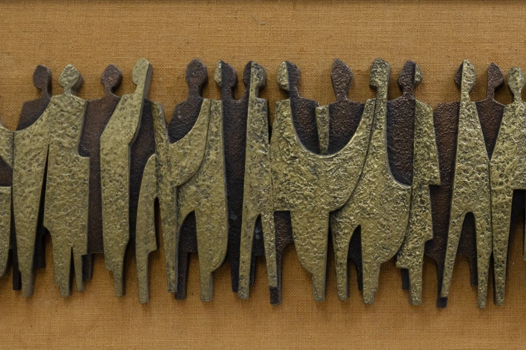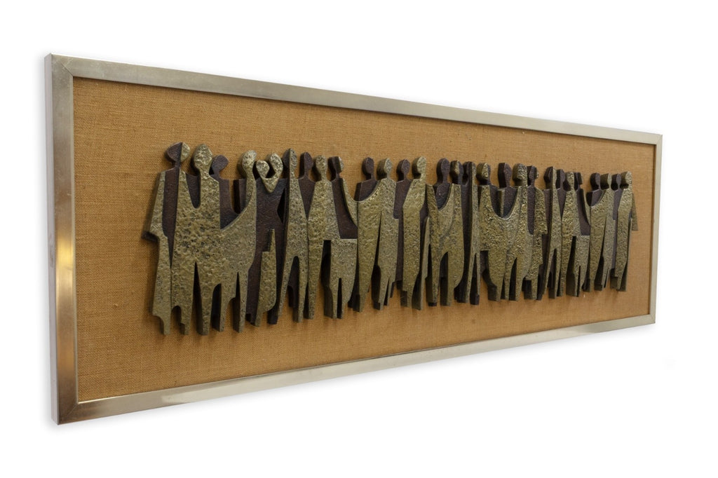 Giovanni Schoeman - Citizens, 1974 Modern Brutalist Bronze Wall Sculpture Framed