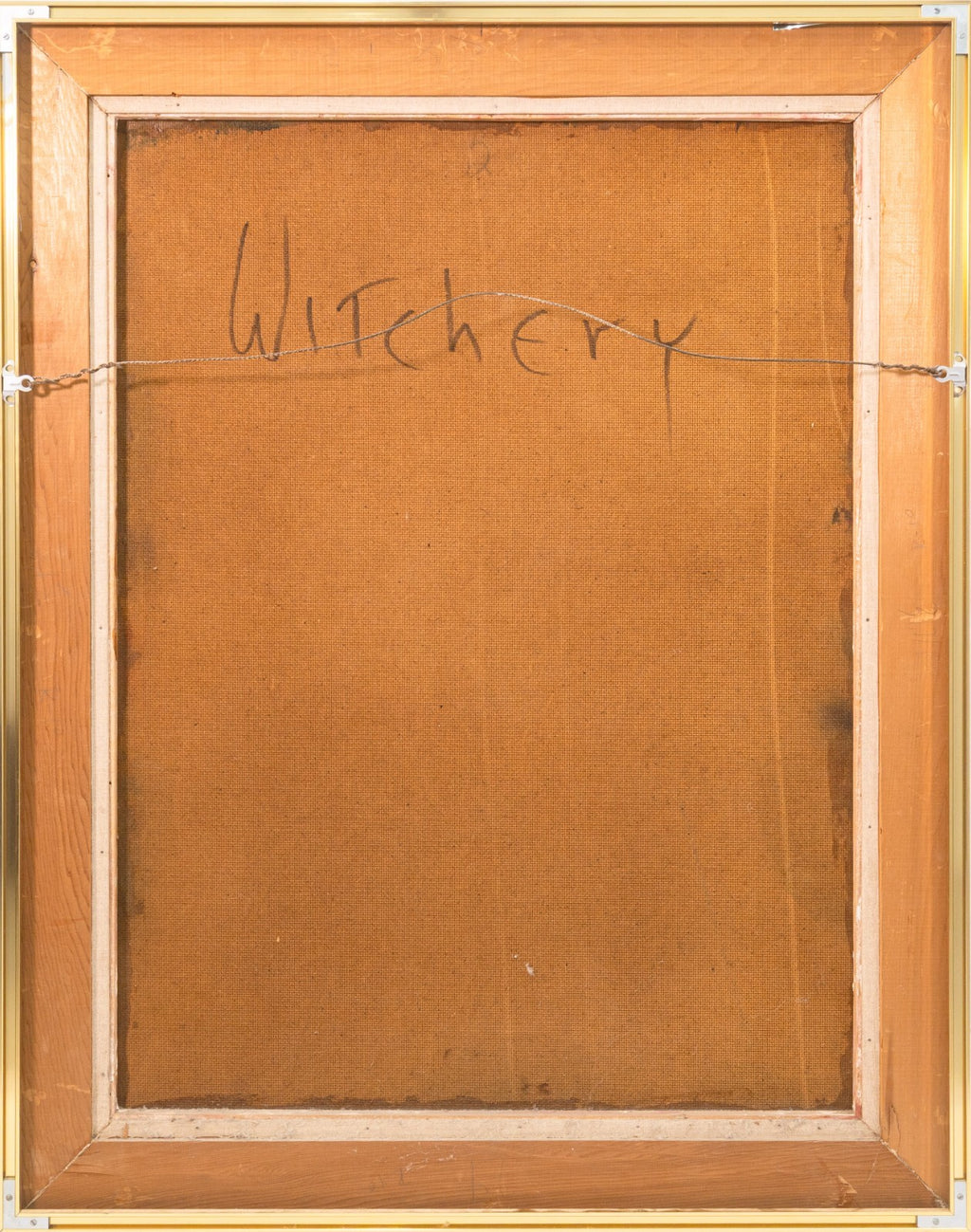 A modern abstract expressionist oil on board titled "Witchery" by Leonardo Nierman. Hand signed on the lower right and dated 1967. Titled on the verso. From a private collection. Dimensions: 37.25"h x 29.5"w x 2"d (framed). Included artist book measures 13.25"h x 13.25"w x 0.75"d. In very good condition.