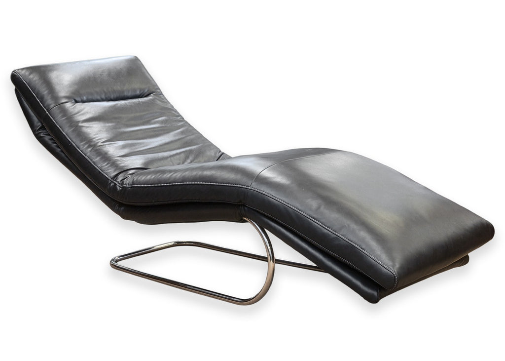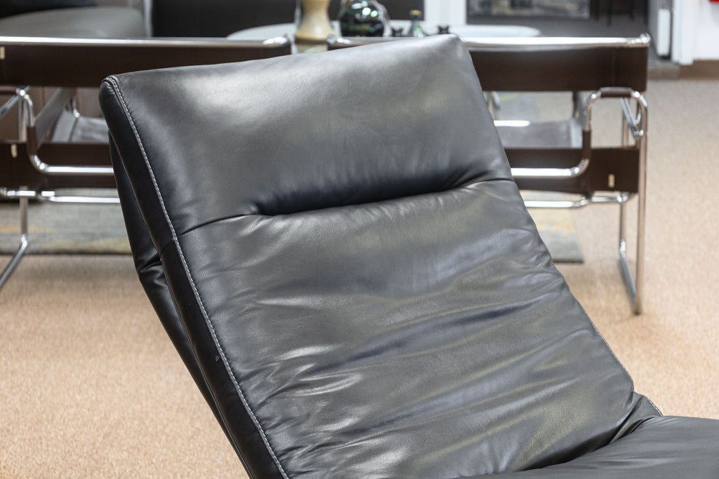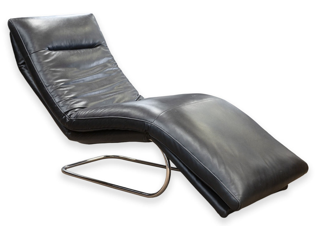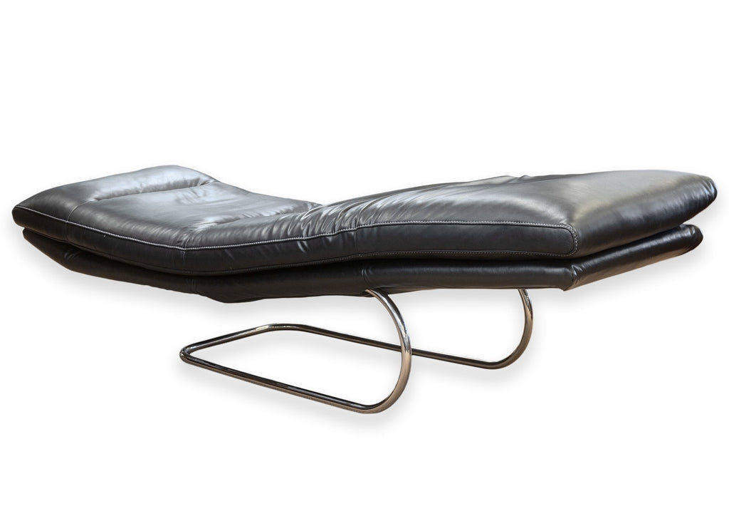 W. Schillig Daily Dreams Black Leather & Chrome Cantilever Chaise Lounge Chair