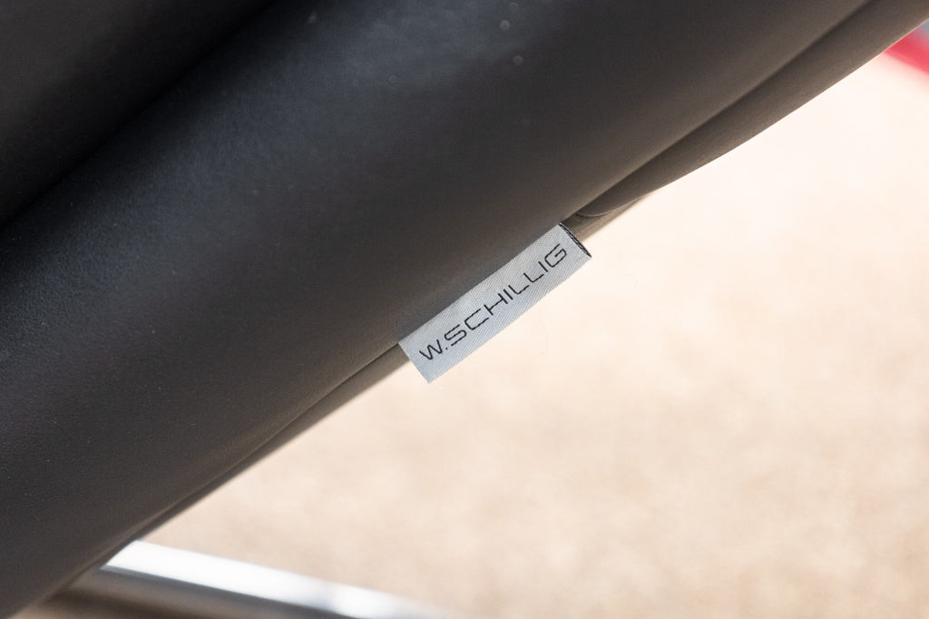 A W. Schillig "Daily Dreams" model 47001 chaise lounge chair. This is a wonderful contemporary modern lounge chair with design elements heavily inspired by Mies Van Der Rohe. This chair features a black leather exterior, and a full tubular chrome cantilever frame. The chair features 3 axes of adjustability and articulation; and adjustable headrest, an adjustable backrest, and an adjustable footrest. Each section has multiple points of adjustment available so that you can always find perfect lounging position. The cushions of this chair are also fully removable with zipper attachments for ease of cleaning. This chair is in very good condition, and features the W. Schillig tagging as pictured. As pictured this chair measures 36 inches tall, 27 inches wide, and 64 inches long. It has a seat height of 19 inches, a seat width of 27 inches, and a back height of 21 inches. But, since this chair is hight adjustable, these measurements are not fully accurate.