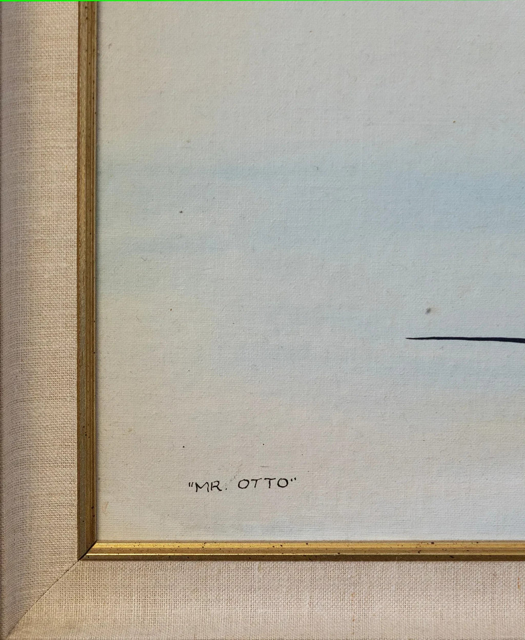 John Morris Mr. Otto Signed Midcentury Modern Surrealist Oil Painting on Canvas