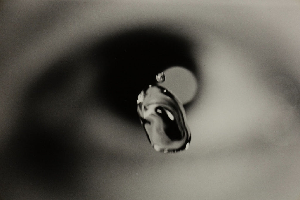 A striking example of Susan Derges' experimental approach to photographic imagery, "Untitled (Eye) No. 1 (1991)" captures suspended droplets of water in sharp focus against the blurred backdrop of a human eye. The surreal juxtaposition between clarity and distortion creates a sense of both intimacy and abstraction, central to Derges' exploration of perception, reflection, and the act of seeing. Known for her pioneering work in camera-less photography, Derges often merges art and science to investigate natural phenomena. This gelatin silver print embodies her innovative use of light and liquid as both subject and medium, inviting viewers to contemplate the fragile boundary between observer and observed. Presented in a minimalist frame, this evocative black-and-white composition exemplifies Derges' mastery of visual poetry through technical precision and conceptual depth. From a private collection. Dimensions: 33.5"h x 35.5"w x 1"d (framed). In very good condition. Full condition reports available upon request.