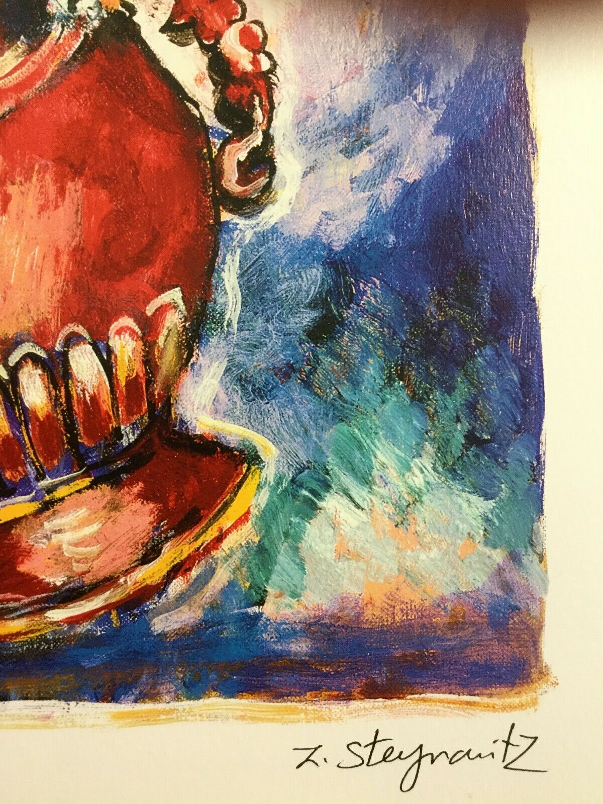 Modern Unframed Angels w Vase of Flowers Zamy Steynovitz Signed Seriolithograph