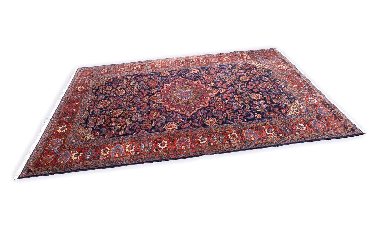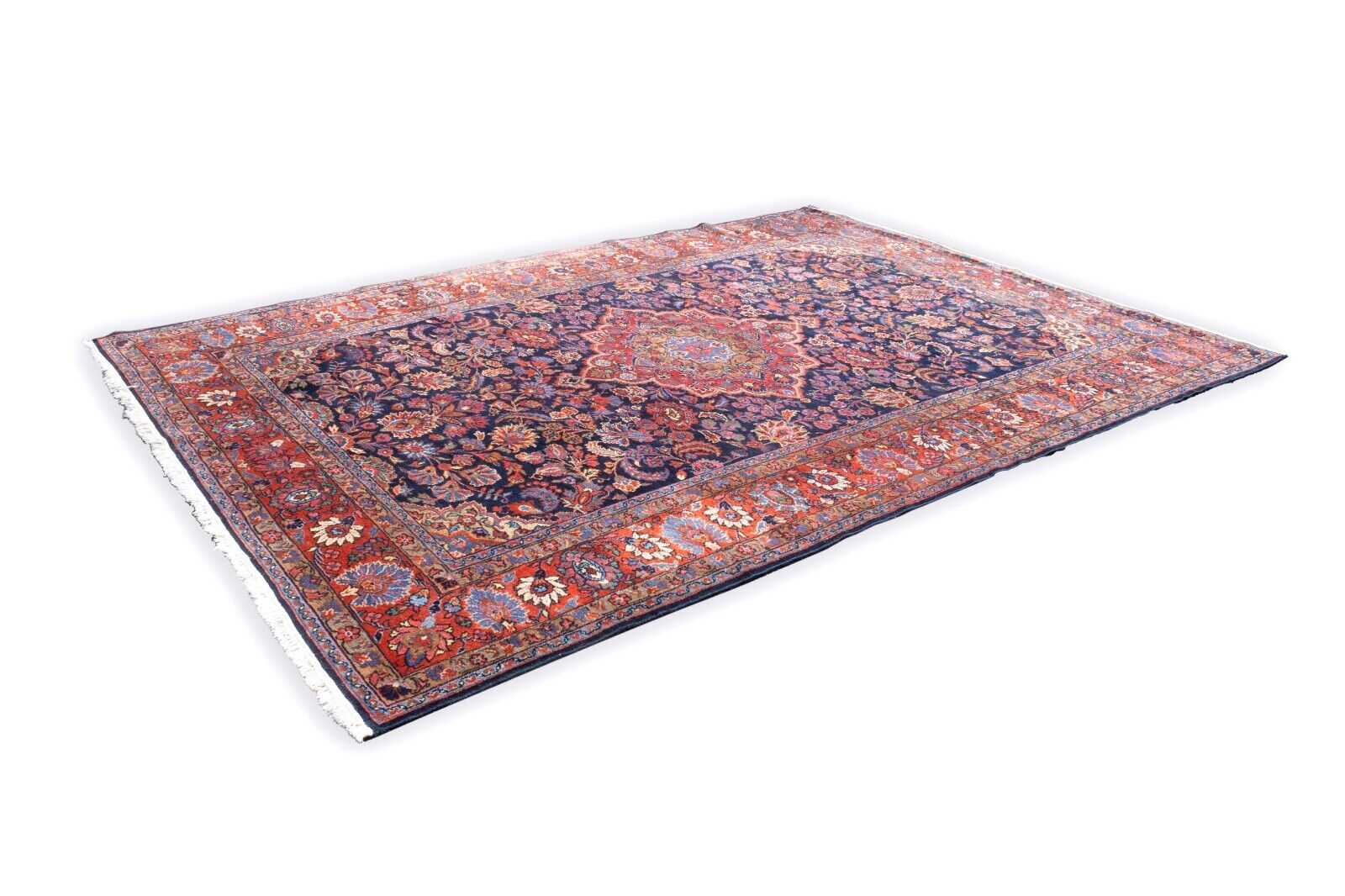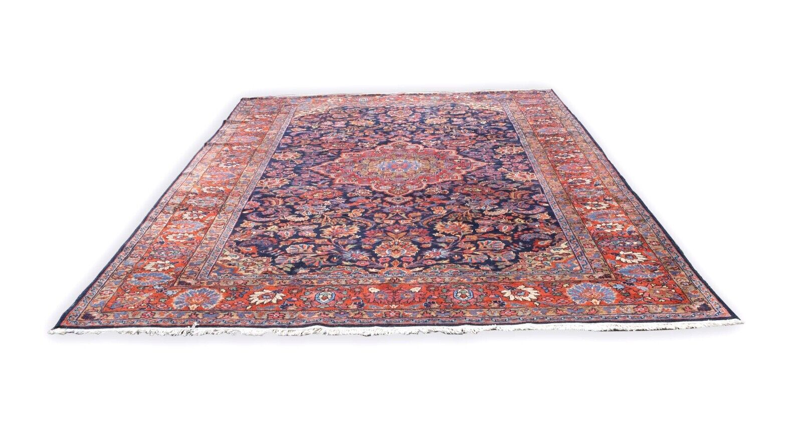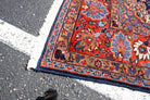 Exquisite and timeless, this Hamadan Antique Hand-Knotted Oriental Rug showcases the rich heritage of traditional rug-making. Crafted from a luxurious blend of cotton and wool, this piece features intricate floral patterns in vibrant reds and deep blues, framed by an ornate border that adds elegance to any space. Hand-knotted with exceptional skill, this rug not only serves as a stunning decorative piece but also as a testament to the enduring quality of craftsmanship. Ideal for adding a touch of classic luxury to your home. Dimensions: 122" x 86.5"