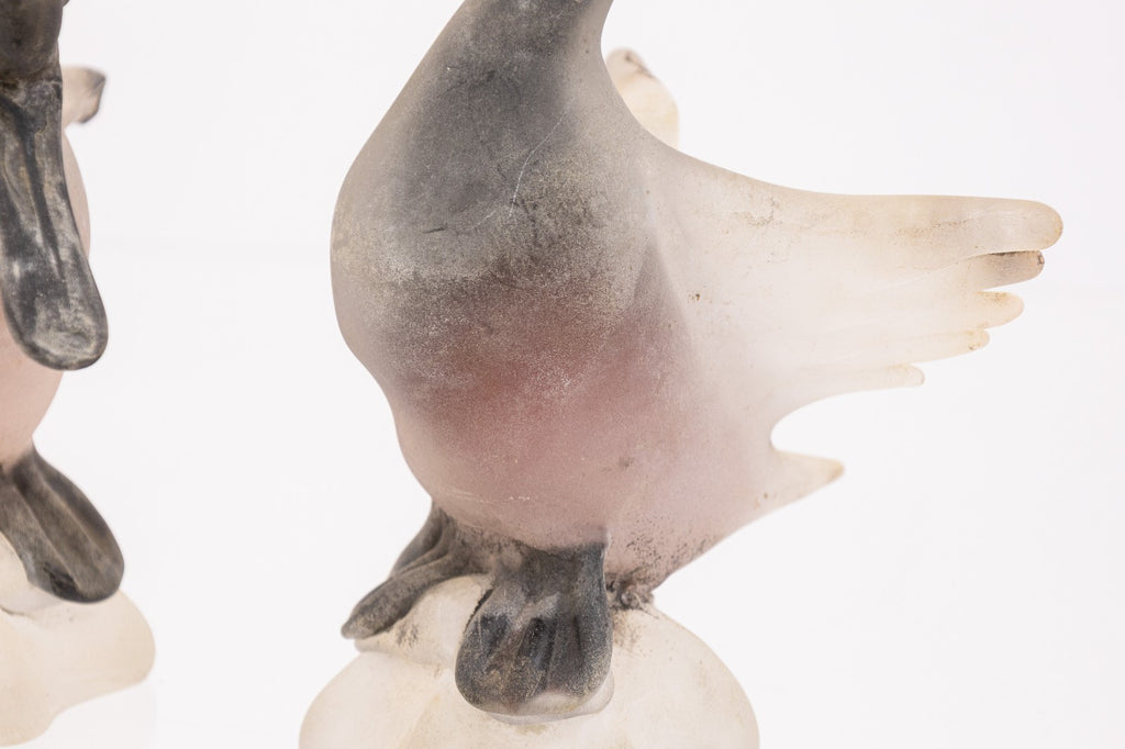 Pair of Vintage Italian Gino Cenedese Vetri Murano Frosted Glass Birds