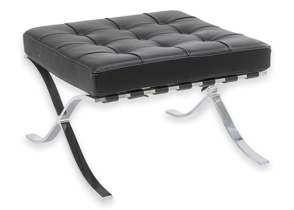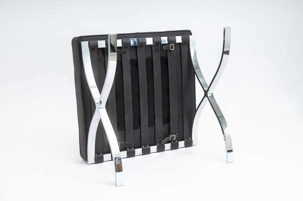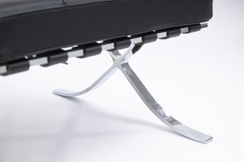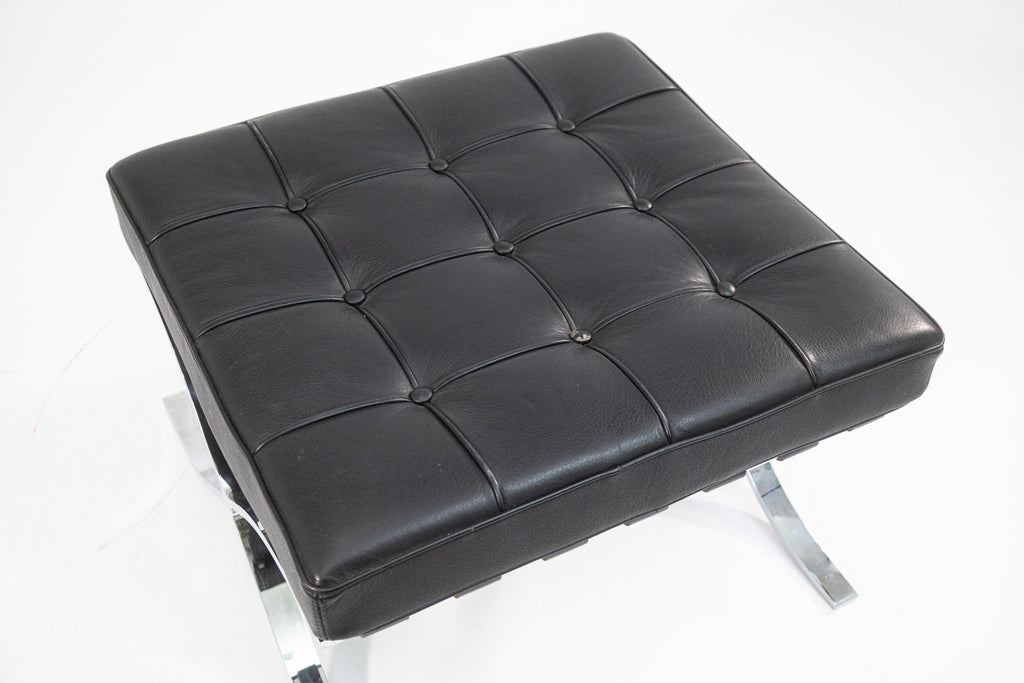 Contemporary Modern Barcelona Style Black Leather and Chrome Ottoman Footstool