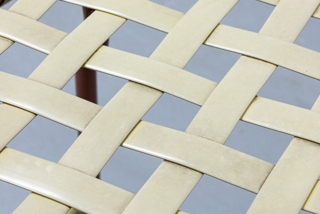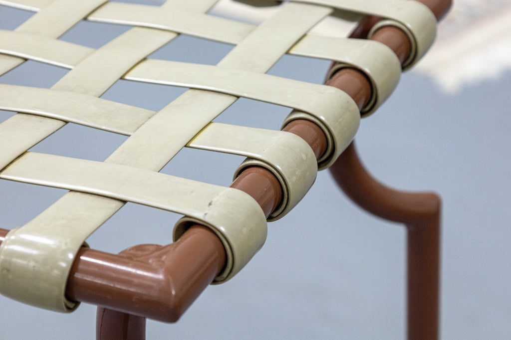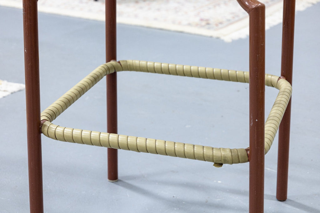 Set of 4 Vintage Tropitone Brown and Beige Woven Vinyl Seat Outdoor Patio Stools
