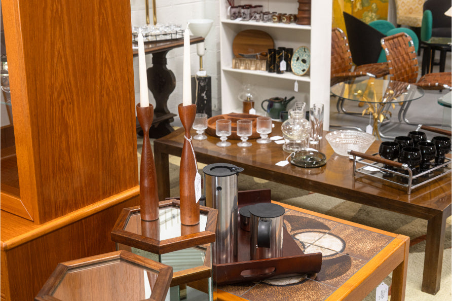 Located just outside Detroit in Keego Harbor, Le Shoppe Vendor Market sits within the Le Shoppe Modern showroom — 25,000 square feet of curated retail, auctions, and now, our vintage vendor market.