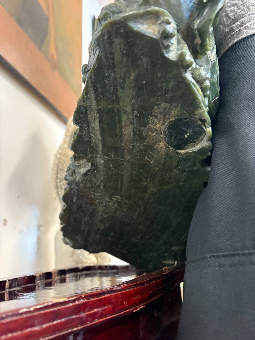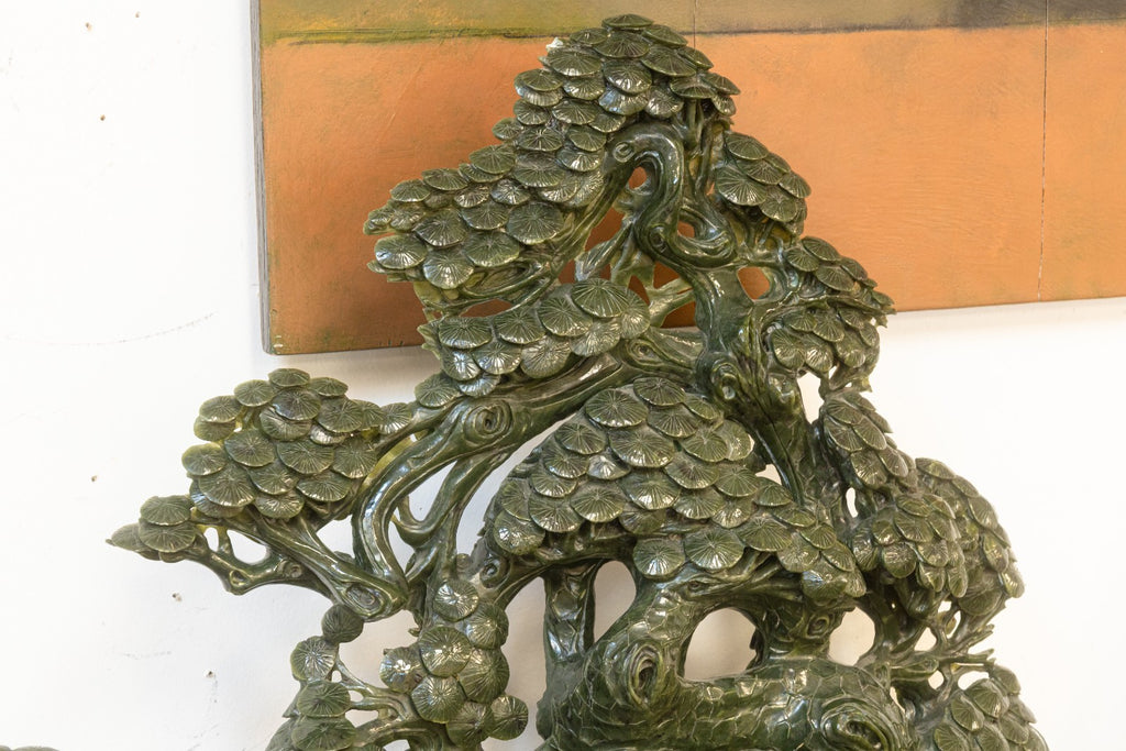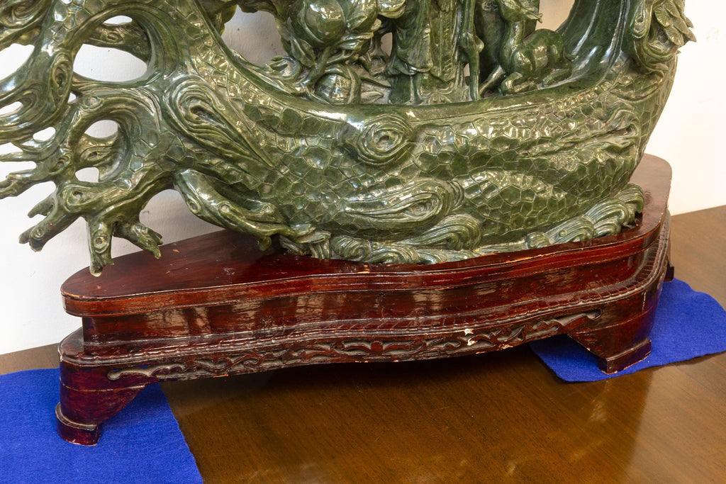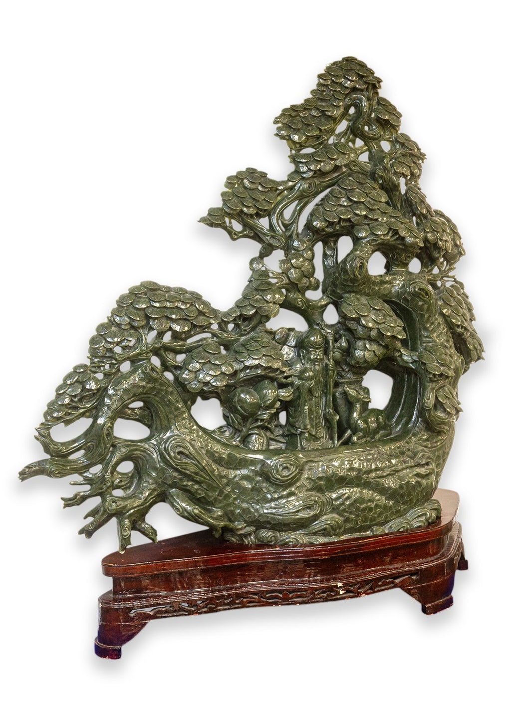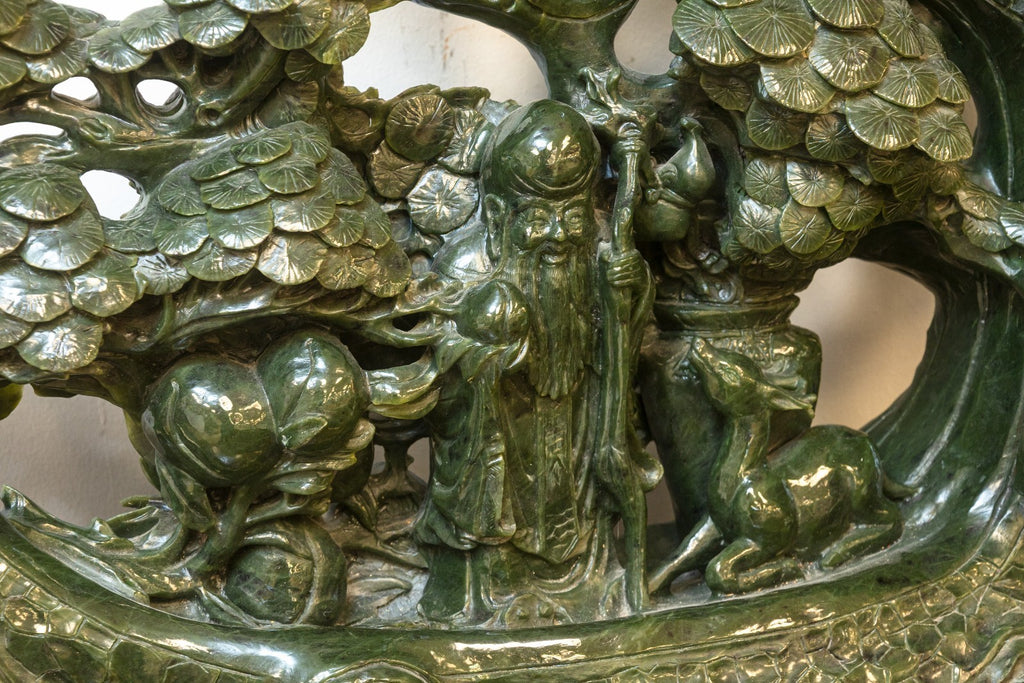 Chinese Carved Jade Sculpture with Shou Lao, Deer, and Dragon Base 36”