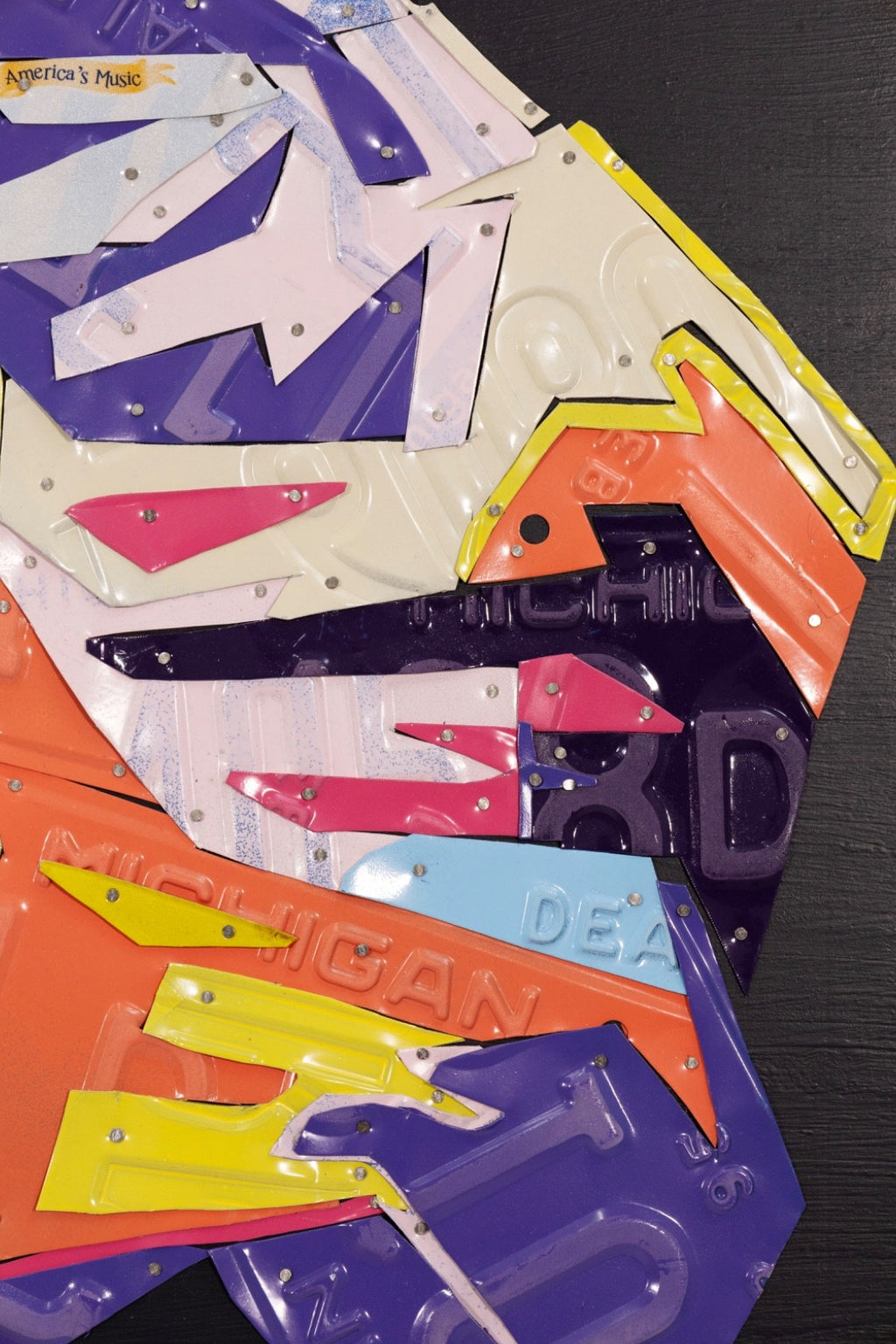 David Bowman (Design Turnpike) is a Detroit-based artist known for his handmade license plate art and maps crafted from reclaimed vintage automobile tags. Inspired by his lifelong fascination with travel, geography, and the visual diversity of license plates, Bowman transforms Americana into vibrant contemporary compositions. Working under the moniker Design Turnpike, his work celebrates Detroit’s automotive heritage and has been widely collected and featured in galleries, private collections, and media outlets across the United States.
