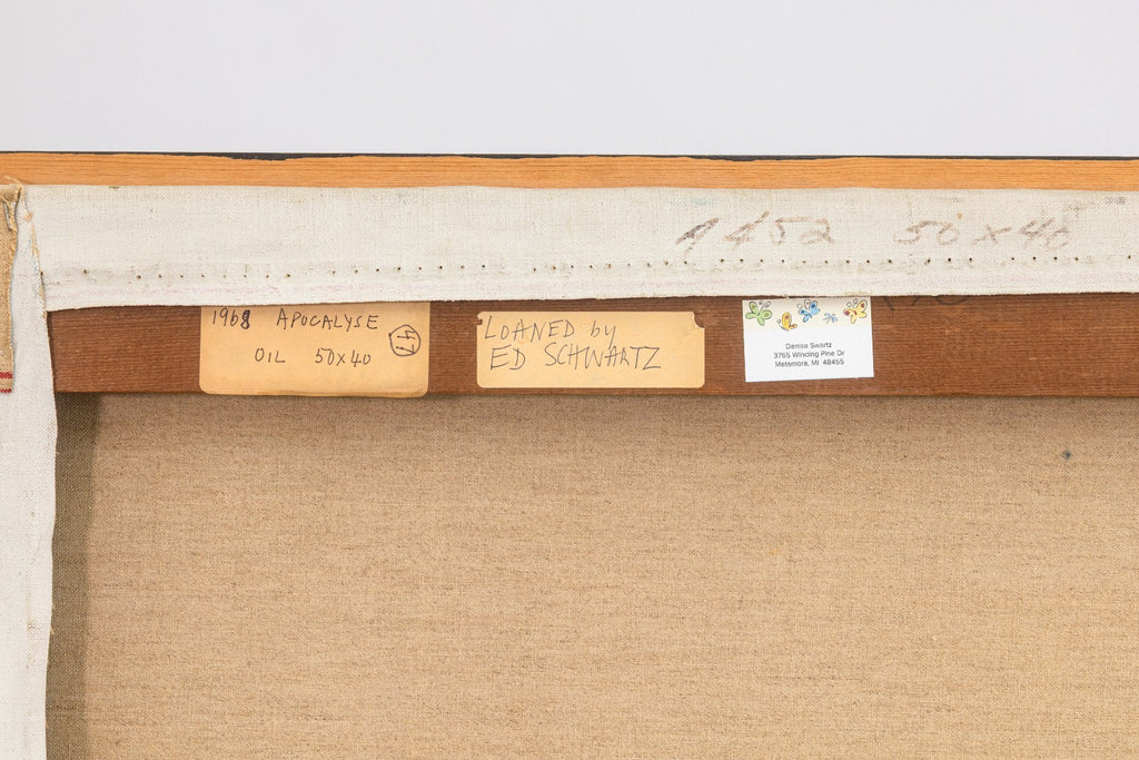 Provenance: From a private collection in Metro Detroit; acquired directly from the artist's estate via Francis Littna's widow, Victora Littna. "Apocalypse" was curated in the artist's solo exhibition at the Grand Rapids Art Museum, November 4-18, 1975 (catalog #48). Copy of exhibition catalog via the listing. Dimensions: 41"h x 51"w x 1.25"d (framed). In very good vintage condition. Full condition reports are available upon request.